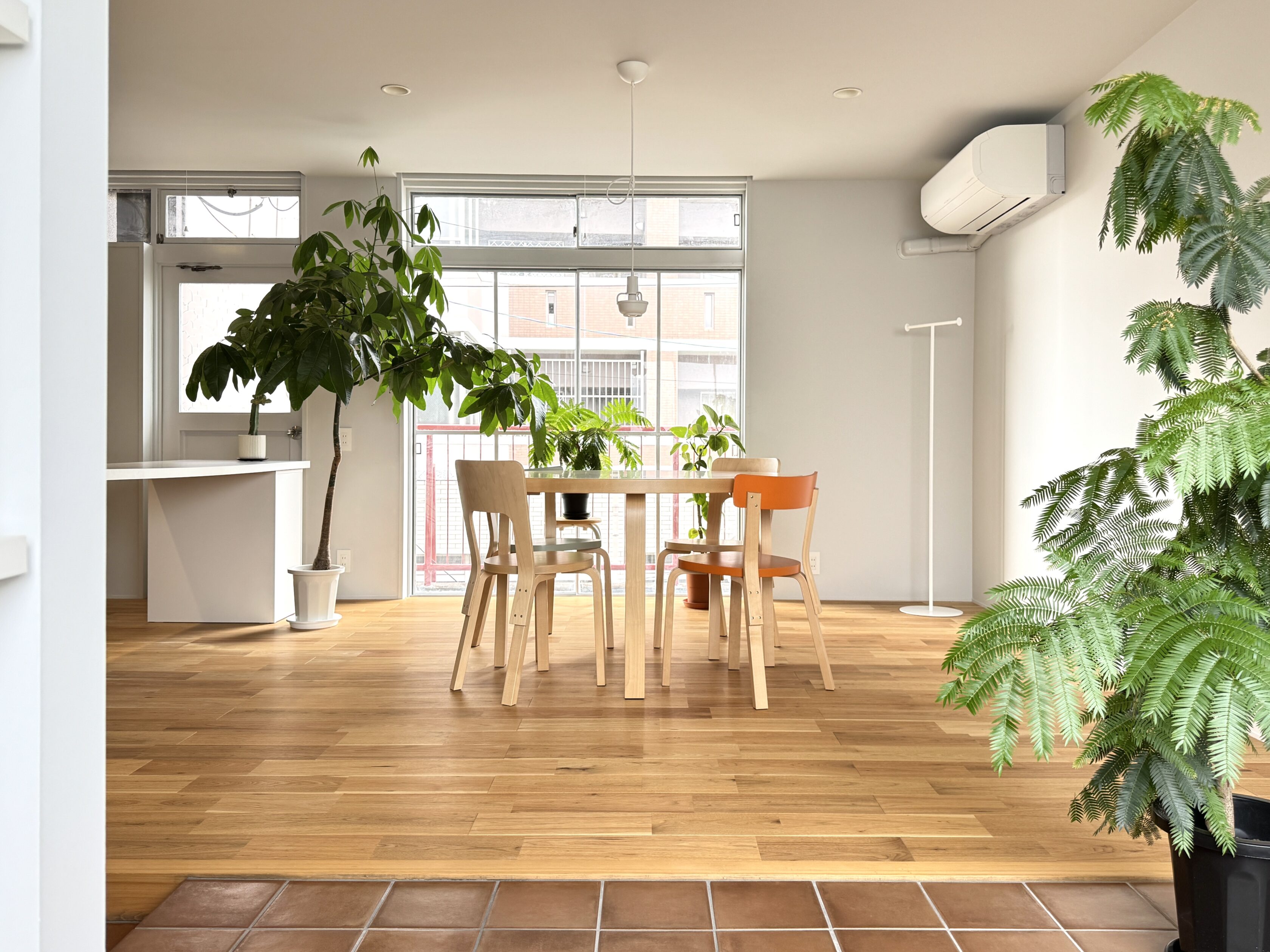 ご縁がありアパートの一室を改装し、他にもカフェやお菓子のアトリエ、コワーキングスペースなど、多方面の方々が集まる場所を設計の拠点としています。